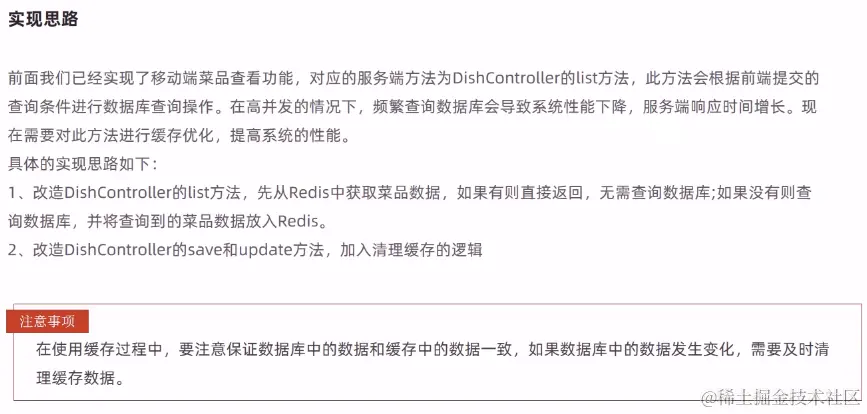 接着我们来学习如何缓存我们的菜品数据,先来看看我们的实现思路
