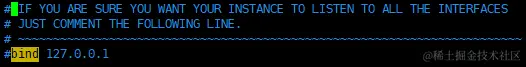 现在我们还存在的一个问题就是,我们的redis目前只能让我们的本机连接到,而不能够让其他机子连接到,这是因为我们的配置文件里规定了只有我们本机的ip地址的访问才允许通过,所以我们要进行一些改动,首先我们要将我们的redis.conf中的bind 127.0.0.1注释掉