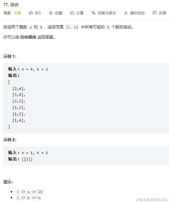 - 组合问题:N个数里面按一定规则找出k个数的集合