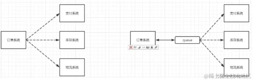 使用MQ作为应用之间的中间层,从而使得应用直接不存在直接调用的关系,解除应用之间的耦合。这样在被调用的应用挂掉以后,应用之间的调用不会直接产生异常,请求仍可以正常发送,待被调用应用重新起来以后,再去消费处理MQ中挤压的调用请求,为系统的修复争取到了时间。