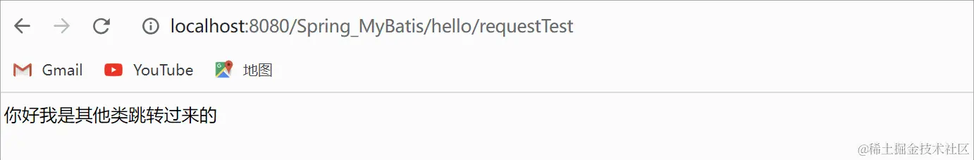 <%@ page contentType="text/html;charset=UTF-8" language="java" %> <html> <head> <title>Title</title> </head> <body> 你好我是其他类跳转过来的 </body> </html>网页效果: