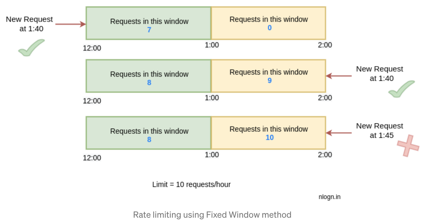 在一个固定的时间窗口内,只允许一定数量的请求。