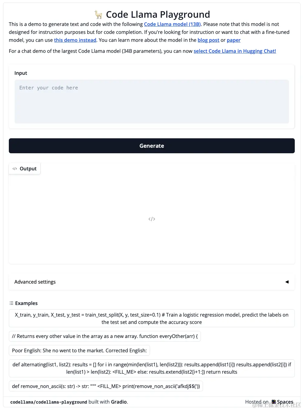 我们准备了 这个 Space 或下面的 Playground 以供大家尝试 Code Llama 模型 (130 亿参数!):