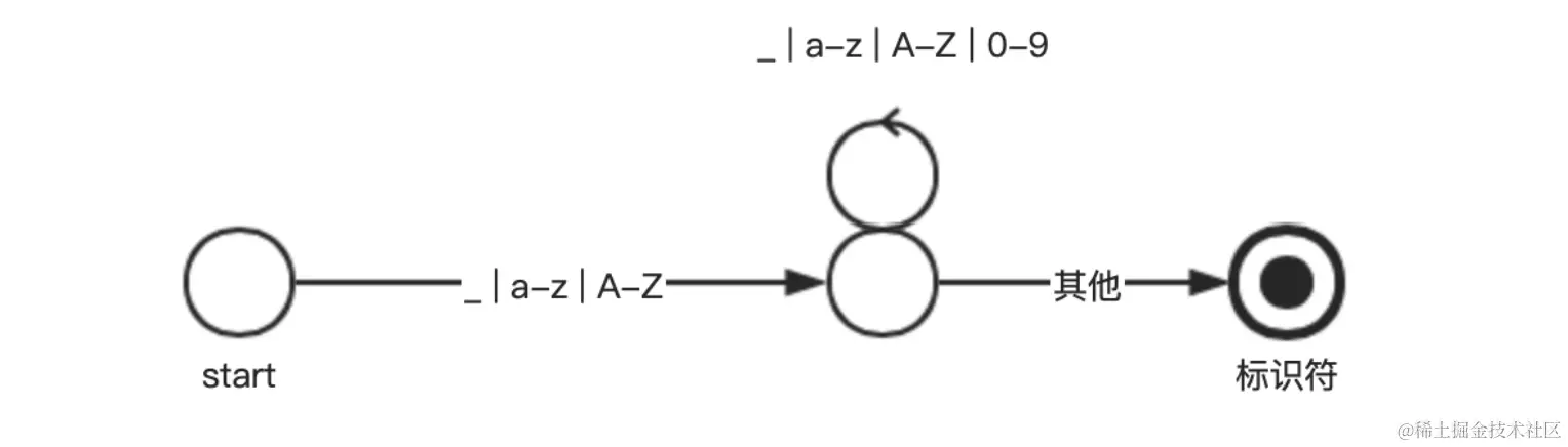 - 词法分析:使用有限状态机,识别一个个字符生成词法单元