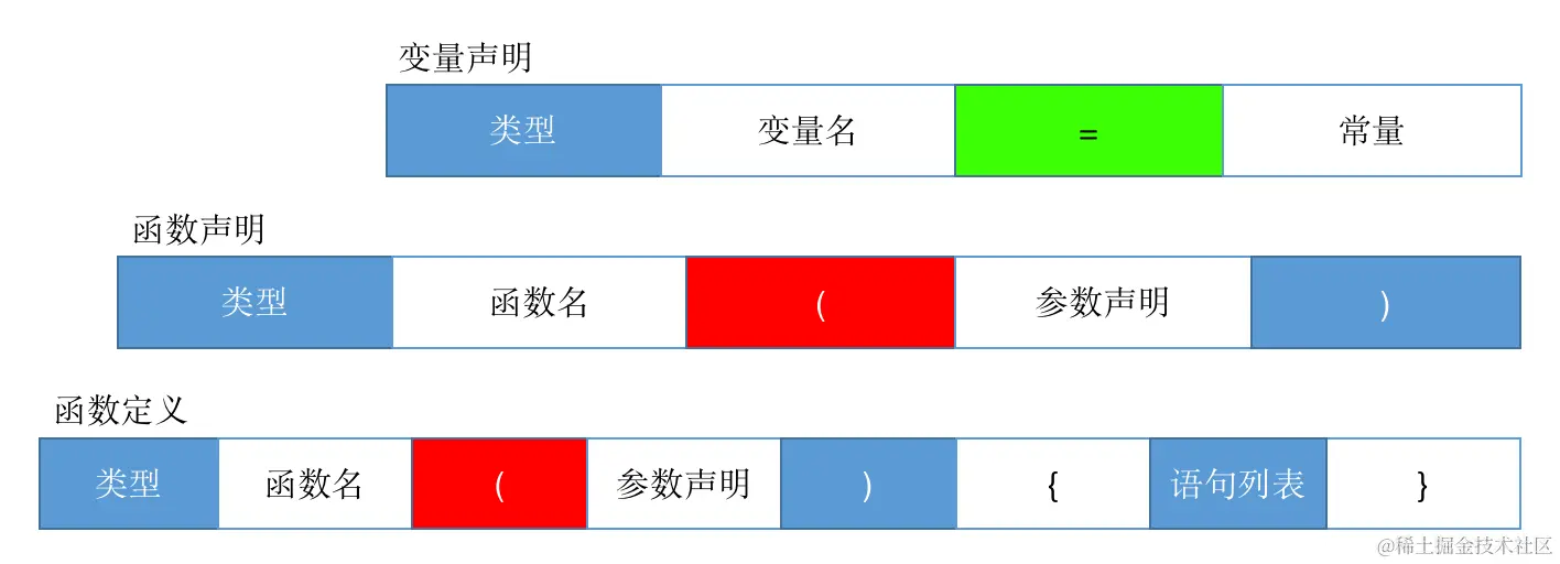 下面我们来看看C语言中怎么去实现这个声明语句的匹配的。