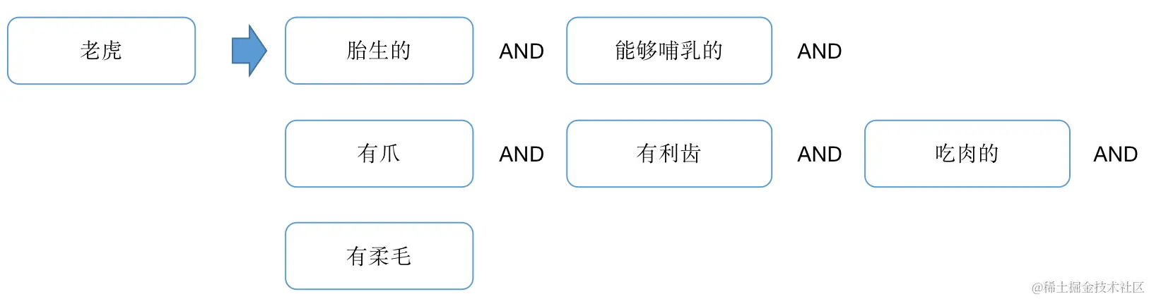 把条件铺开,我们可以得到一个老虎的最终描述: