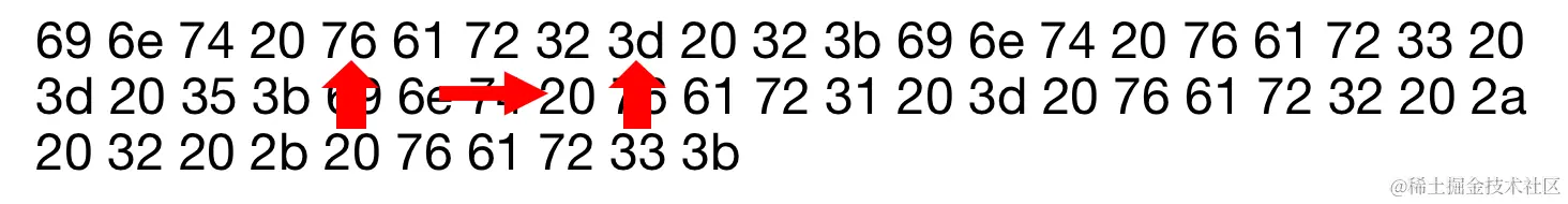 符合标识符的起始字符的规则,识别为标识符,继续向后遍历,分别得到a、r、2、=,当获取到=的时候,标识符的状态结束,获取到第二个词素var2,是一个标识符,于是我们得到词法单元<id, 2>