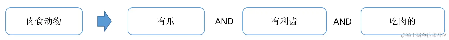 但是如果条件很多,层级很深,也会出现平铺开来太大很难匹配的情况,所以我们要让它能够动态匹配,让“老虎”的匹配变成接收是三个条件的组合(a, b, c),然后判断条件a是不是“哺乳动物”,同时a也可以是一个条件组合(a1, a2),只要a这个条件组合可以和“哺乳动物”匹配,那就认为a满足条件。