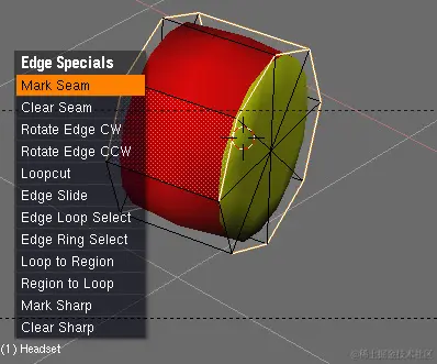 按“Ctrl+E”显示“边缘特价”菜单,其中包含边缘命令列表,然后选择“标记接缝”。所选边将以橙色勾勒出轮廓,表示它们被标记为接缝。