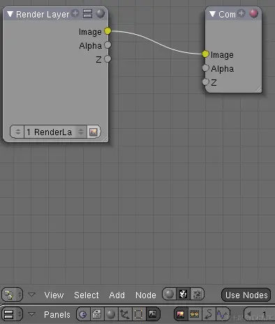 单击“节点编辑器”窗口底部的“复合节点”和“使用节点”按钮。Blender将为您创建两个初始节点:输入节点“渲染层”和输出节点“复合”。