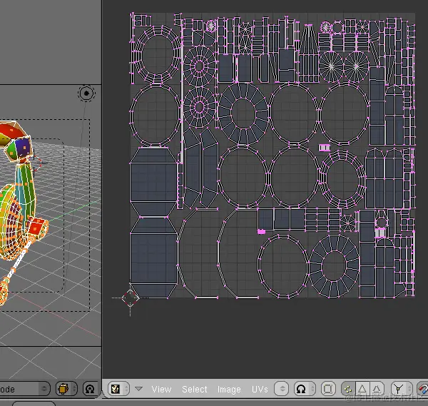 单击“确定”按钮解开模型,然后在UV\图像编辑器窗口中检查结果。如果幸运的话,或者模型非常简单,您将从第一次尝试开始就获得连续的UV贴图。如果你喜欢其他人,你只需要一步一步地手动展开。