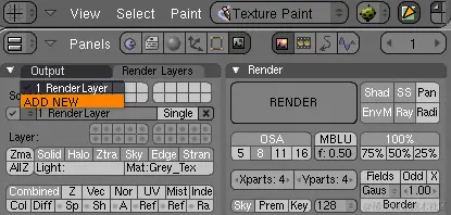 告诉渲染引擎使用模型的纹理材质,而不是彩色集。选择“场景”面板 (F10),然后选择“渲染按钮”,然后选择“渲染层”选项卡。在“Mat:”字段中,输入您之前纹理的灰色材质的名称。