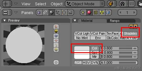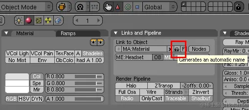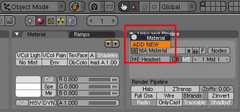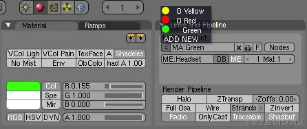 首先,您需要创建一组无阴影材质,每种材质具有不同的颜色,确保您有足够的材质来覆盖模型,而不会有相同的颜色相互重叠。然后,切换到“着色”(F5)面板,选择“材质按钮”,然后单击“添加新”按钮添加新材质。