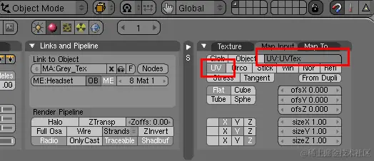 现在,为了告诉纹理使用UV坐标,请选择“地图输入”选项卡,单击“UV”按钮并在“UV:”字段中指定UV纹理(不是图像)名称。注意:要了解UV纹理名称,请切换到“编辑”(F9)面板和“机甲”子面板。该名称在“UV 纹理”字段下指定。