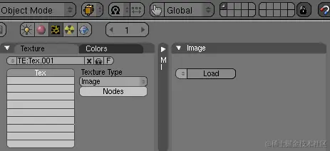 之后,您需要告诉纹理要使用什么图像。转到“着色”面板(F5),然后转到“纹理按钮”(F6)。在“纹理类型”字段中,您应该看到“无”。将其更改为“图像”,然后在“图像”子面板上,单击“加载”按钮以加载您之前创建的图像。