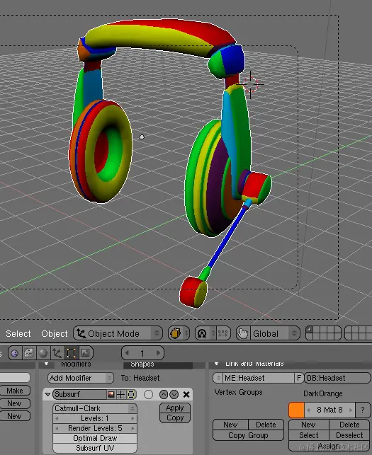 执行与先前颜色相同的操作。使用“Col”按钮将颜色从默认灰色更改为颜色,或从颜色选择器中选择一种颜色。注意:无论新颜色完全替换以前的颜色,所有以前的颜色仍驻留在内存中。您可以通过单击相同的“<>”按钮来查看它们。请记住,在所有创建的颜色都分配给模型零件之前,不要保存/打开模型,因为Blender将擦除所有未分配的颜色(它们的名称前缀为“0”)。如果您绝对必须中途停止,并且某些颜色尚未分配,只需在完成该材料后按材料名称旁边的“F”按钮即可。这将告诉Blender保存颜色,即使它没有用户。