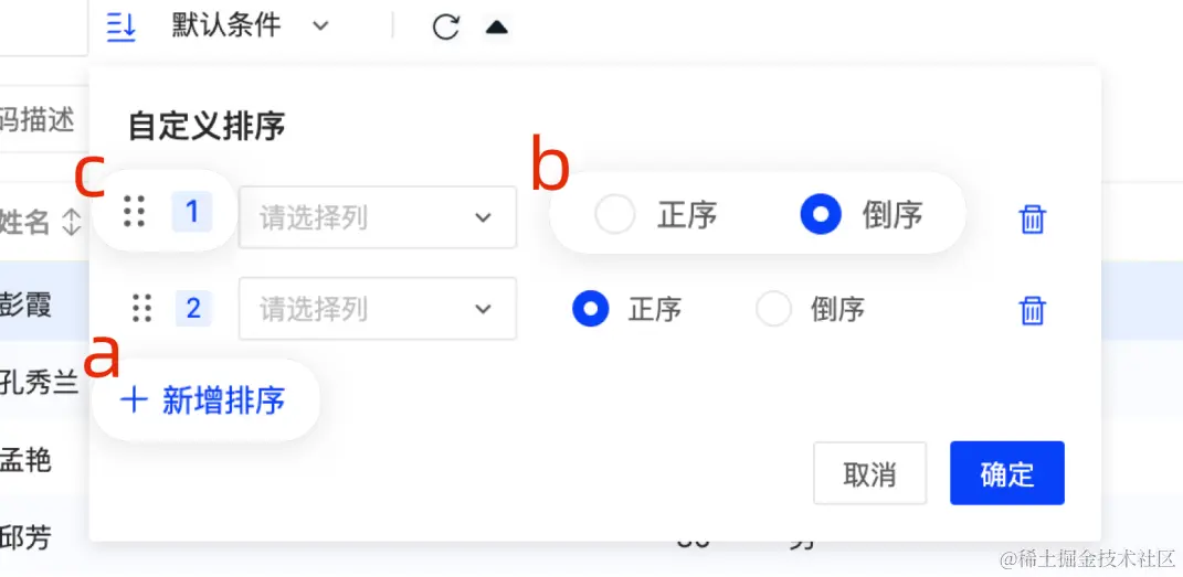 - 排序弹窗内交互
