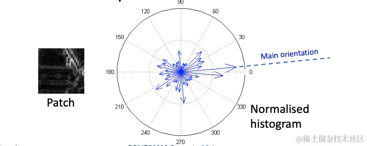 直方图是相对于补丁中的主要方向进行编码的。