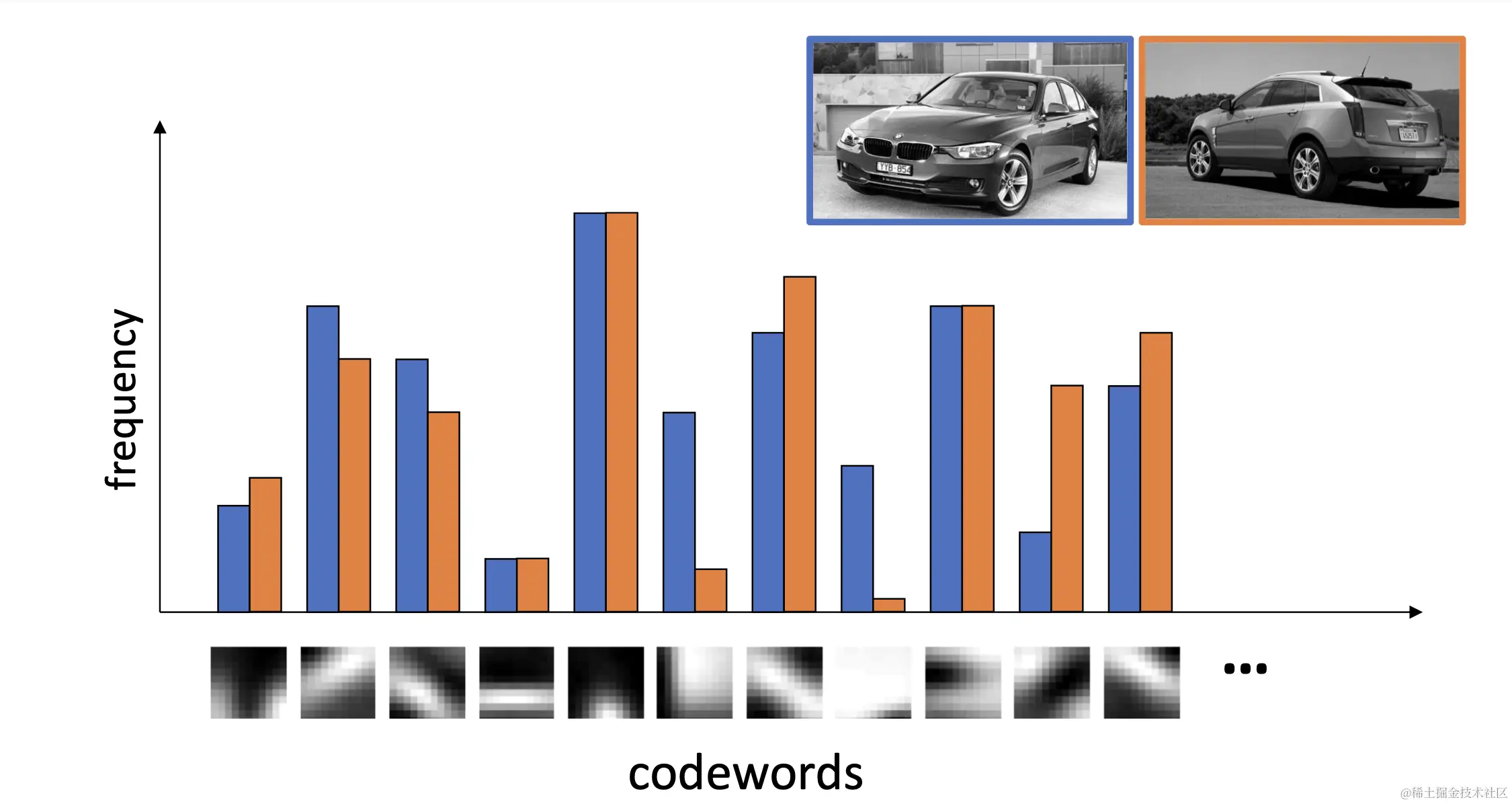 通过这种方式,即使局部特征有多种不同的外观或变化,也能通过聚类合并为更稳定、更一致的“视觉词”,从而提高图像识别或分类的准确性。