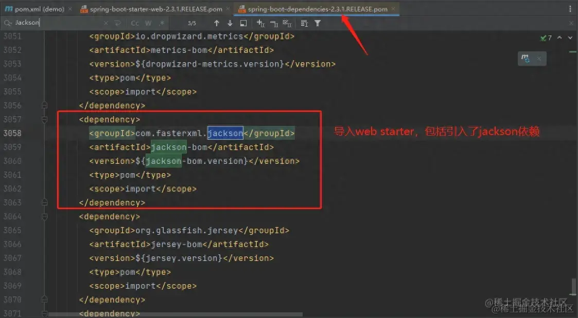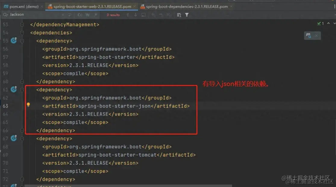 如下,我给大家举证一遍,为何导入了web-starter就不需要导入jackson依赖了。