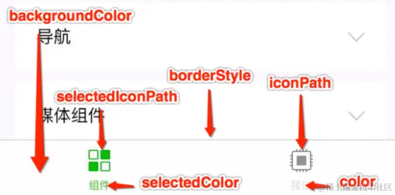 属性 类型 默认值 描述 navigationBarBackgroundColor HexColor #000000 导航栏背景颜⾊,如 #000000 navigationBarTextStyle String white 导航栏标题颜⾊,仅⽀持 black / white navigationBarTitleText String 导航栏标题⽂字内容 backgroundColor HexColor #ffffff 窗⼝的背景⾊ backgroundTextStyle String dark 下拉 loading的样式,仅⽀持 dark / lightenablePullDownRefresh Boolean false 是否全局开启下拉刷新。 详⻅ Page.onPullDownRefresh onReachBottomDistance Number 50 ⻚⾯上拉触底事件触发时距⻚⾯底部距离,单位为px。 详⻅ Page.onReachBottom disableScroll Boolean false 设置为 true 则⻚⾯整体不能上下滚动;只在⻚⾯配置中有效,⽆法在 app.json 中设置该项