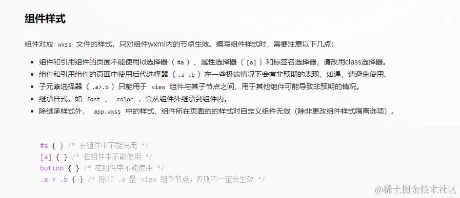 属性选择器,而官方文档在自定义组件部分有要求不能使用,防止出现样式错误,