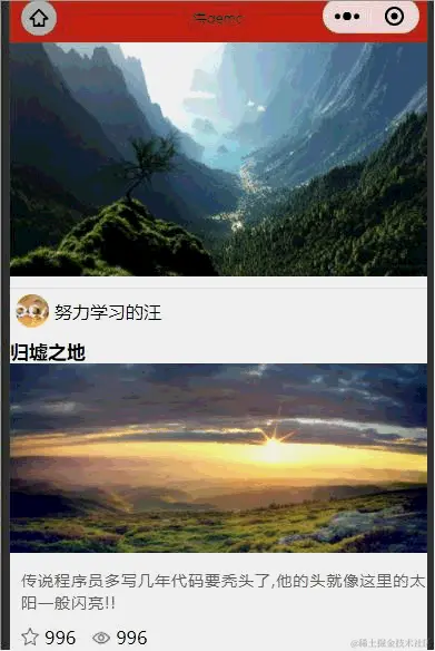 <!--pages/posts/posts.wxml--> <block wx:for="{{posts}}" wx:for-item="item" wx:key="postId" wx:for-index="index"> <post bind:posttap="onGoDetail" res="{{item}}" /> </block> // components/posts/index.js 这是自定义组件 methods: { onTap (e) { //此处不能用箭头函数,否则` this.triggerEvent`将会找不到报错 const pid = this.data.res.postId // console.log( this.data) // console.log( this.properties) this.triggerEvent('posttap',{ pid //这个参数会在事件调用处获取到 }) }, } // pages/posts/posts.js 这个是在调用自定义组件的页面的js中,即可以使用自己的方法,单纯是调用自定义组件定义的事件 onGoDetail: (e) => { //获取组件的自定义属性 //先判断,如果e.currentTarget.dataset去得到值,就取有值的 下面这3种写法效果等同 // let pid = (e.currentTarget.dataset.id)?e.currentTarget.dataset.id:e.detail.pid // let pid = e.detail.pid|e.currentTarget.dataset.id let pid = e.detail.pid || e.currentTarget.dataset.id wx.navigateTo({ url: '/pages/post-detail/post-detail?pid=' + pid, })