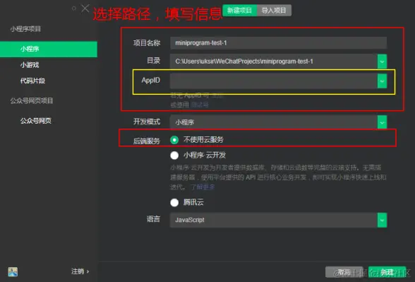 - 新建小程序项目