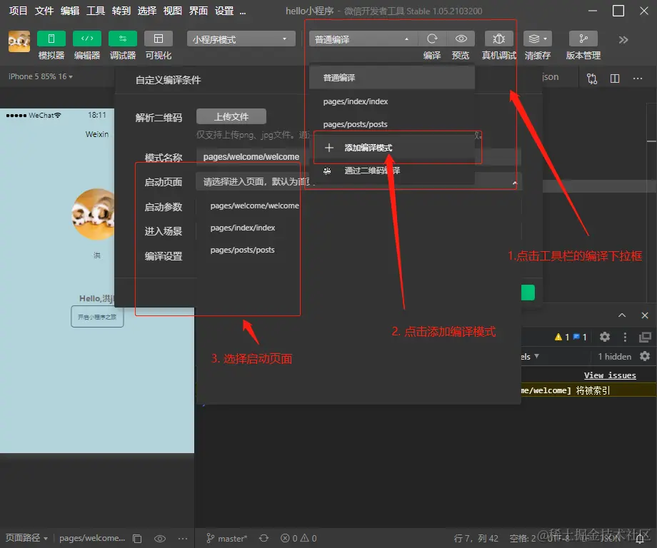选择编译模式,就可以切换初始页面