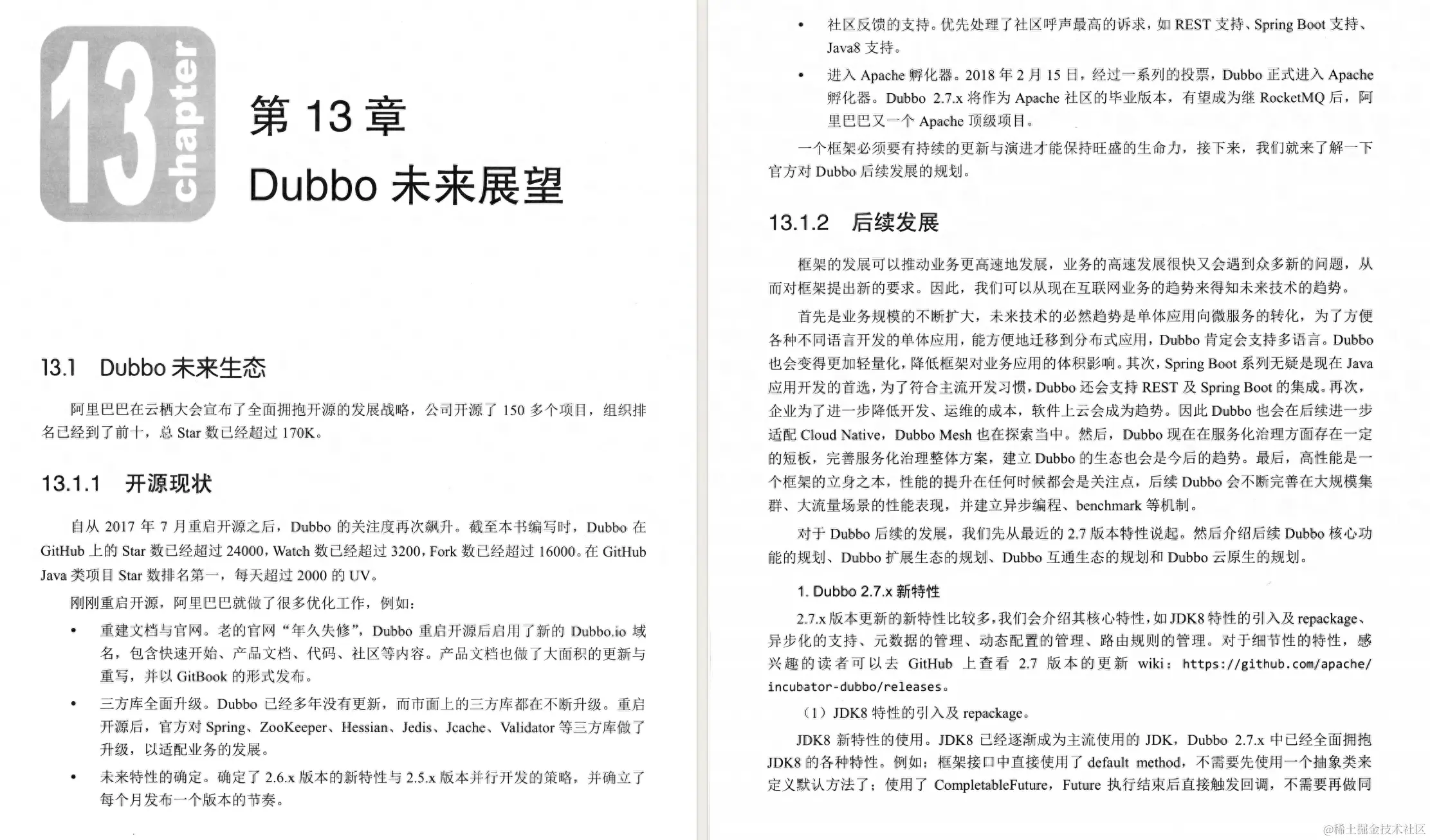 今天这份手册就是为了满足这个需求而编写的。这个份手册系统讲解Apache Dubbo的书籍,深入浅出地解释了Dubbo的工作原理,配以源码级解析。同时,在Dubbo的协议设计、编解码原理、线程模型等方面也做了深度剖析,让小伙伴更清晰的了解,有助于理解分布式环境下的服务通信范式,对问题排查也会有很大益处。