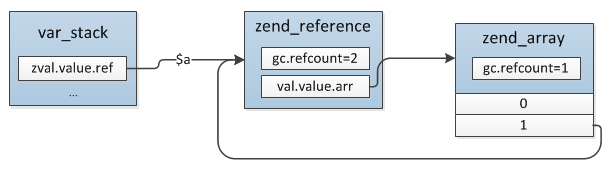 zend_reference *ref; //引用类型,通过&$var_name定义的