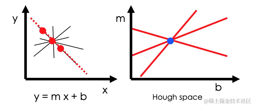 - 霍夫变换是一种用于检测图像中结构的方法。