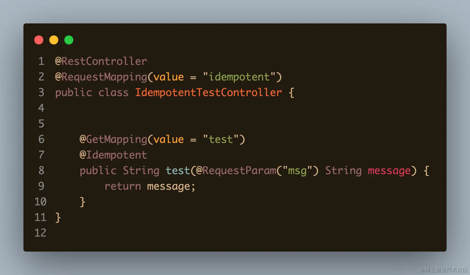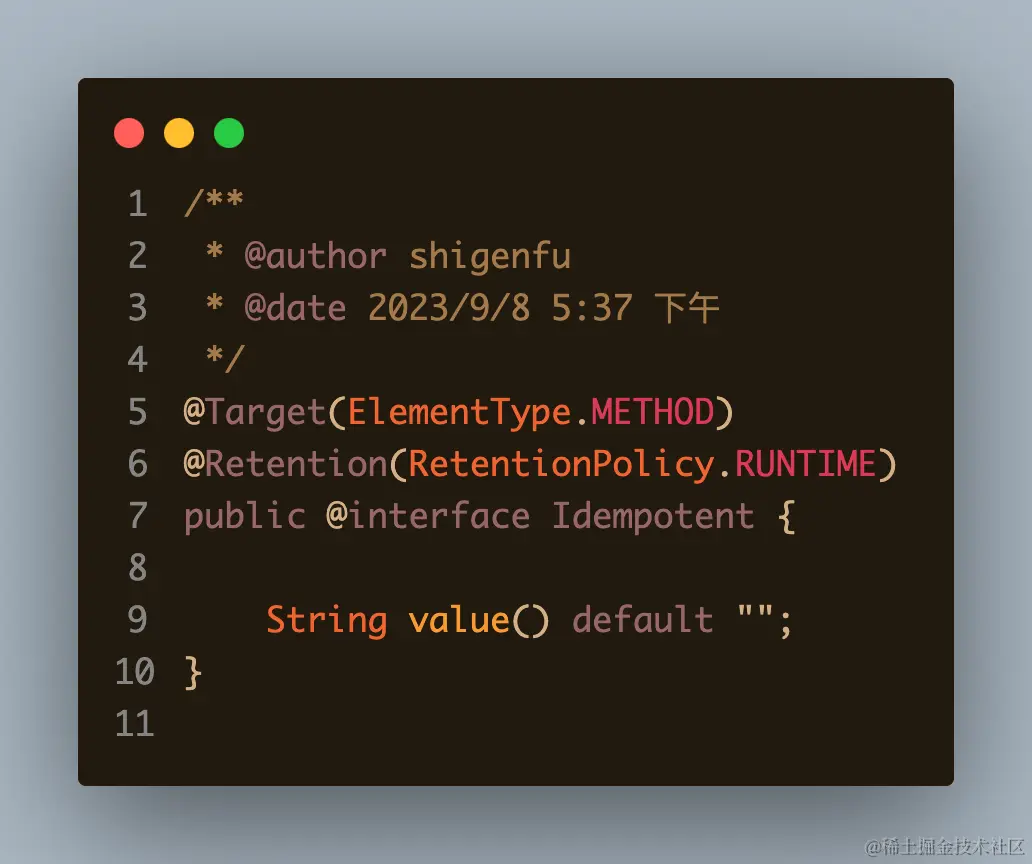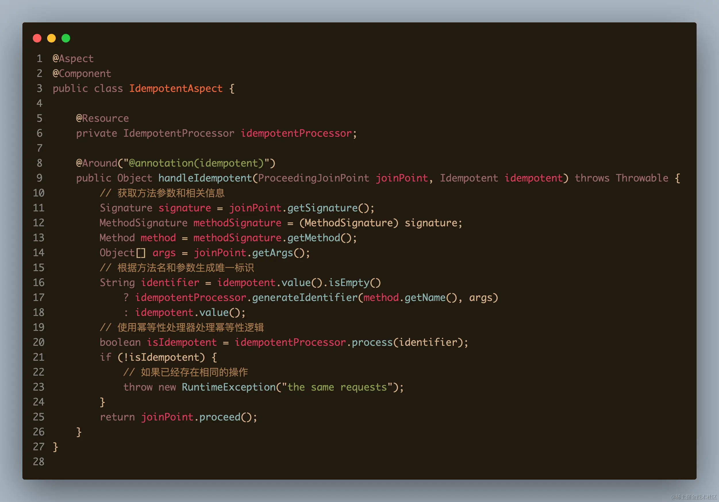 其中的value表示接口的唯一标识,可以为空,下边的IdempotentAspect中会讲到