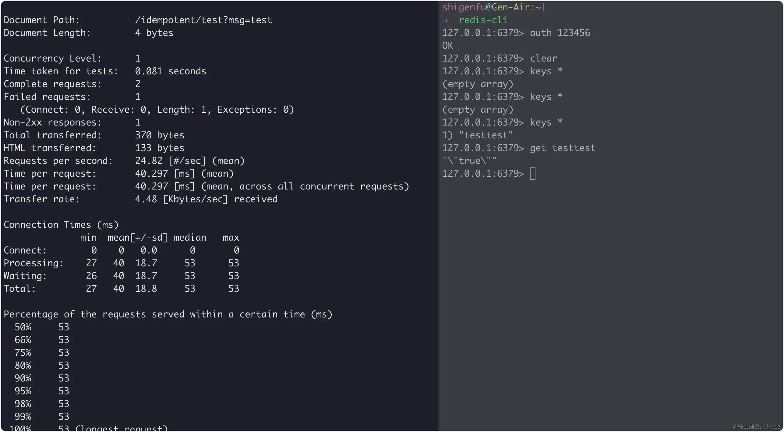 ab -n 2 '127.0.0.1:9000/idempotent/test?msg=test'