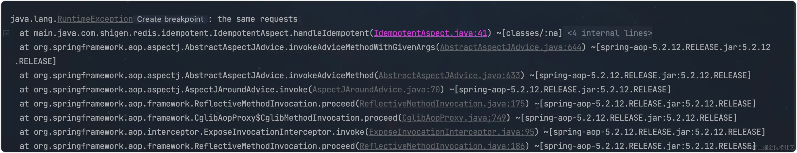 成功了一次,失败了1次,并且redis中出现了值为true的keytesttest。java后端也如期的出现了the same requests的异常信息。