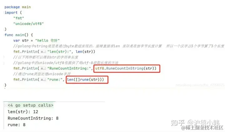 golang中的字符串底层实现是通过byte数组的,中文字符在unicode下占2个字节,在utf-8编码下占3个字节,而golang默认编码正好是utf-8