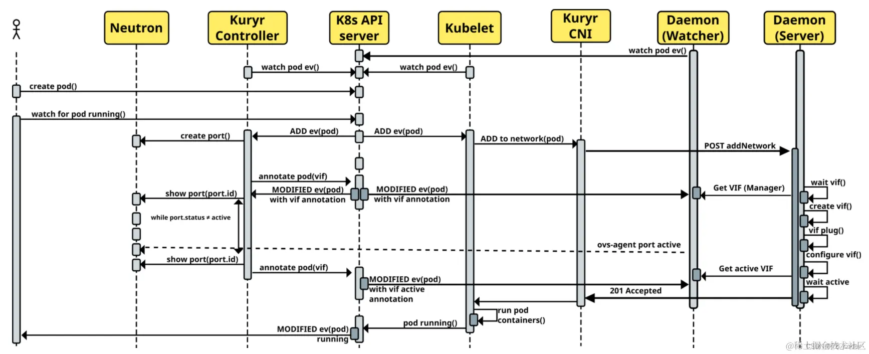 - K8S的Pod映射到Neutron的Port (Pod → Port)