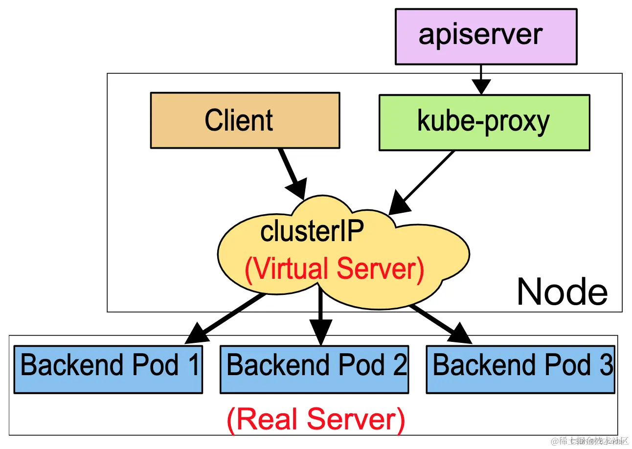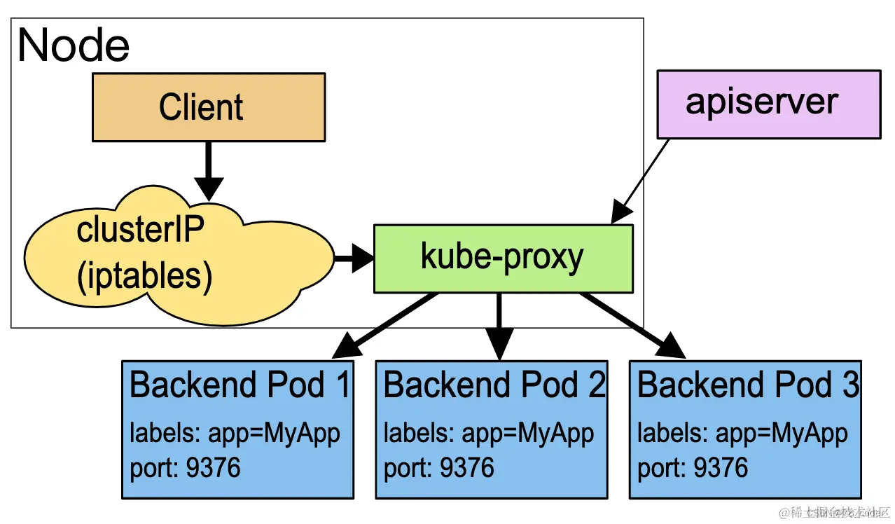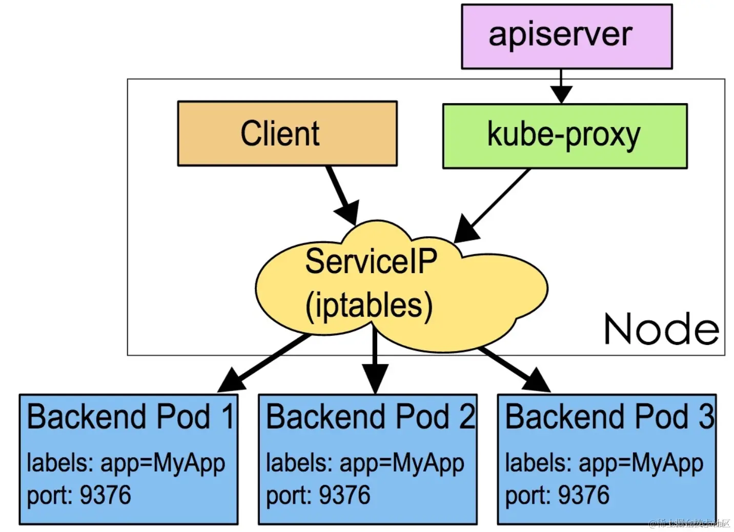 - Client Pod访问Service在本Node上的BackEnd Pod