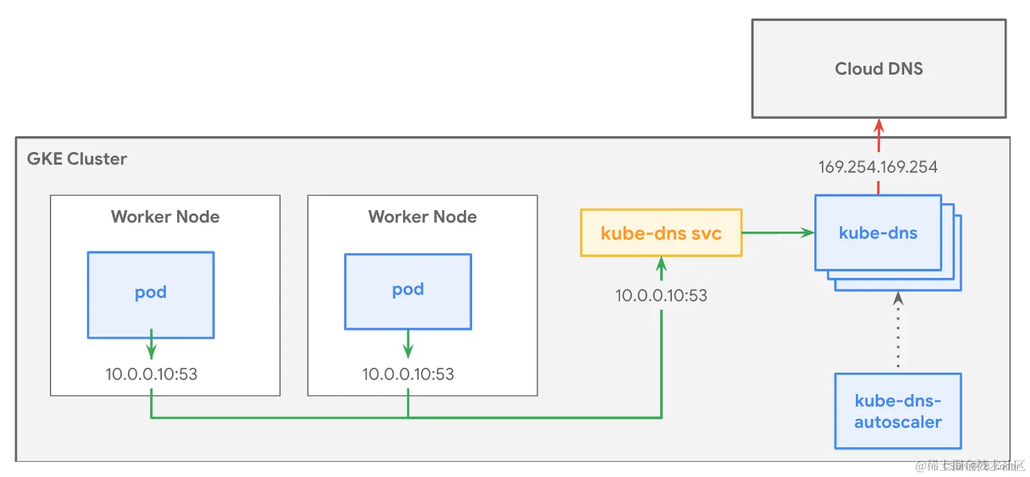 可以通过Local DNS配置实现不同域名后缀递归到不同的K8S集群的kube-dns,每个集群的kube-dns也通过上面Pod访问Service中的LoadBalancer方式暴露到外部。比如在每个Node上部署一个dnsmasq/unbound都可以实现缓存和后缀按需递归(最初AWS的混合云DNS方案就是这样的)。
