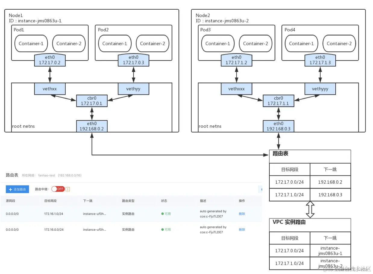 类似Flannel为每个Node分配一个网段,在公有云上使用实例路由的方式。