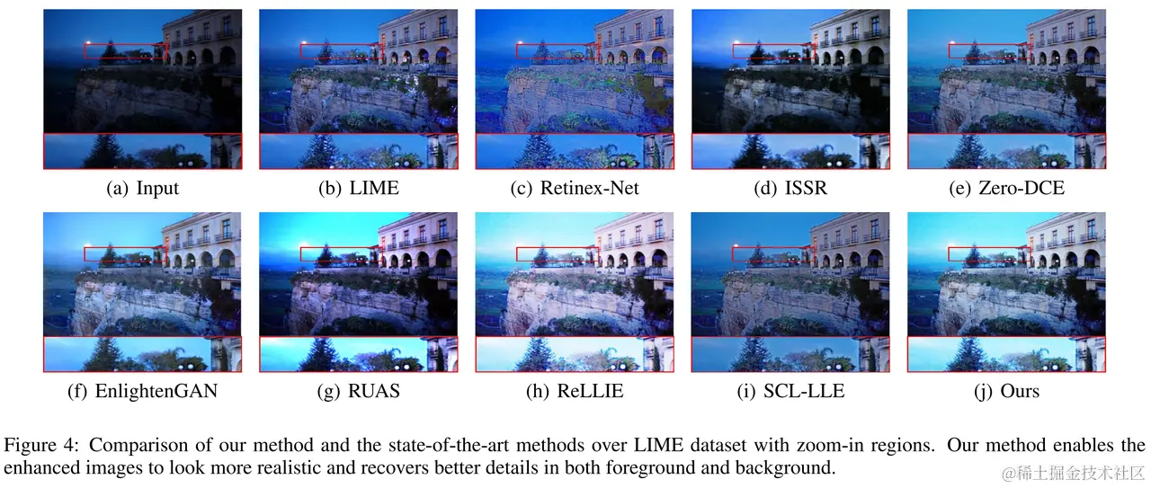 我们从结果中观察到,通过我们的方法增强的图像美学观感最佳,而且没有明显可辨别的噪声和伪影: