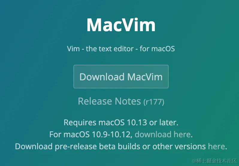 首先,我们下载MacVim软件。在这里,我们可以在这一软件的GitHub官方网站,或者是软件自己的官方网站中,下载软件。我这里就选择在后者中进行下载,如下图所示。