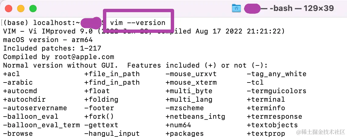 运行上述代码,随后,我们将看到如下图所示的结果;这就是原本电脑带有的Vim的相关信息。