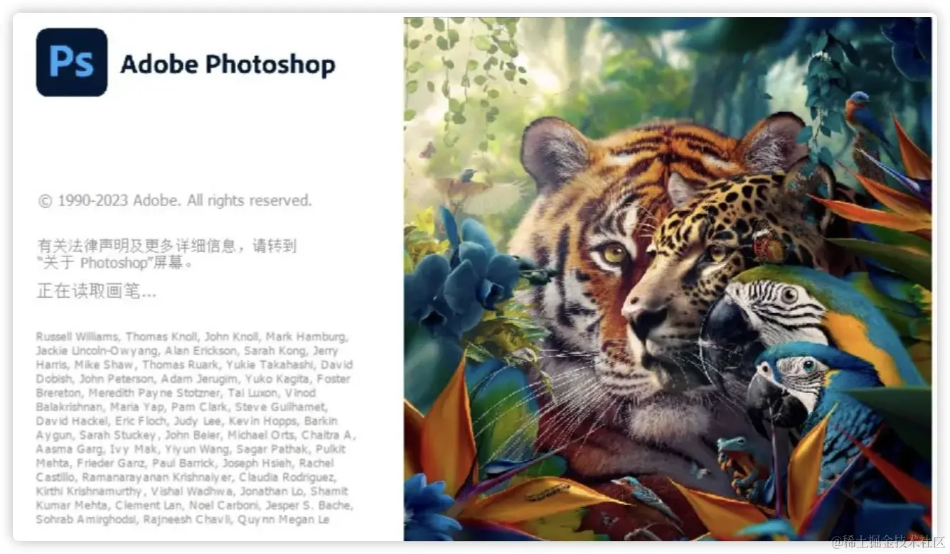 1、最新发布的Photoshop 2024 25.1 Beta版本不仅带来了创意填充功能,还对界面进行了一些调整。细心的用户可能已经注意到,Win版的启动界面焕然一新,一只张牙舞爪的老虎形象令人印象深刻。