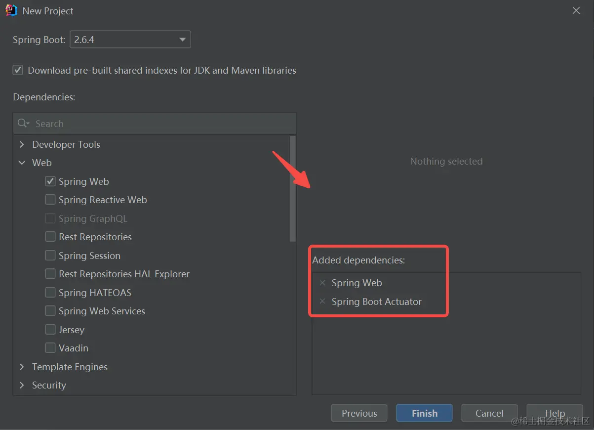 下一步Next 选择版本和添加依赖,点击Finish完成创建。