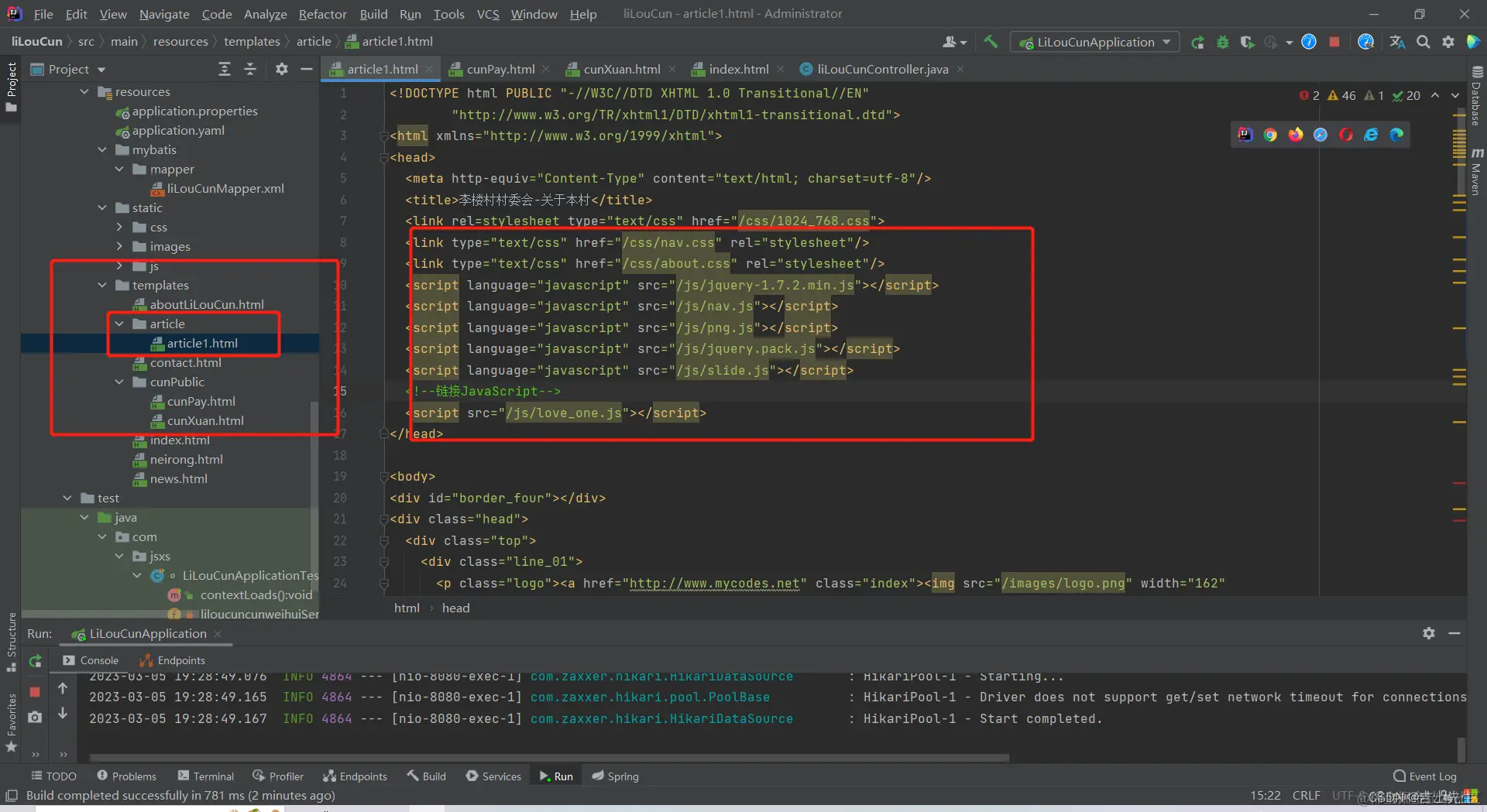 @RequestMapping("/article/{id}") public String article(Model model, @PathVariable("id") int id) { // 这里是正文中的标题 model.addAttribute("title1", "关于卫生问题的公告!!"); model.addAttribute("title2", "关于卫生问题的公告!!2"); model.addAttribute("title3", "关于卫生问题的公告!!3"); model.addAttribute("title4", "关于卫生问题的公告!!4"); model.addAttribute("title5", "关于卫生问题的公告!!5"); model.addAttribute("title6", "关于卫生问题的公告!!6"); // 查询全部文章信息 List<article> articles = liloucuncunweihuiServer.allArticle(); /** * 链表需要反转!! * 这里我们实现了对内容的更新,并且实现了把最新的内容放到了最前面 */ article article = liloucuncunweihuiServer.articleById(articles.size() + (1 - id)); model.addAttribute("article", article.getText()); return "article/article1"; } -
