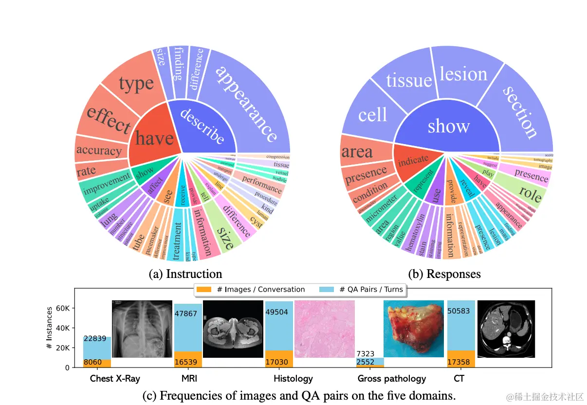 数据集:为了培训 LLaVA-Med,使用了大规模的生物医学数据集,其中包括文本数据(如医学文献、临床报告等)和图像数据(如医学影像、病理学图像等)。