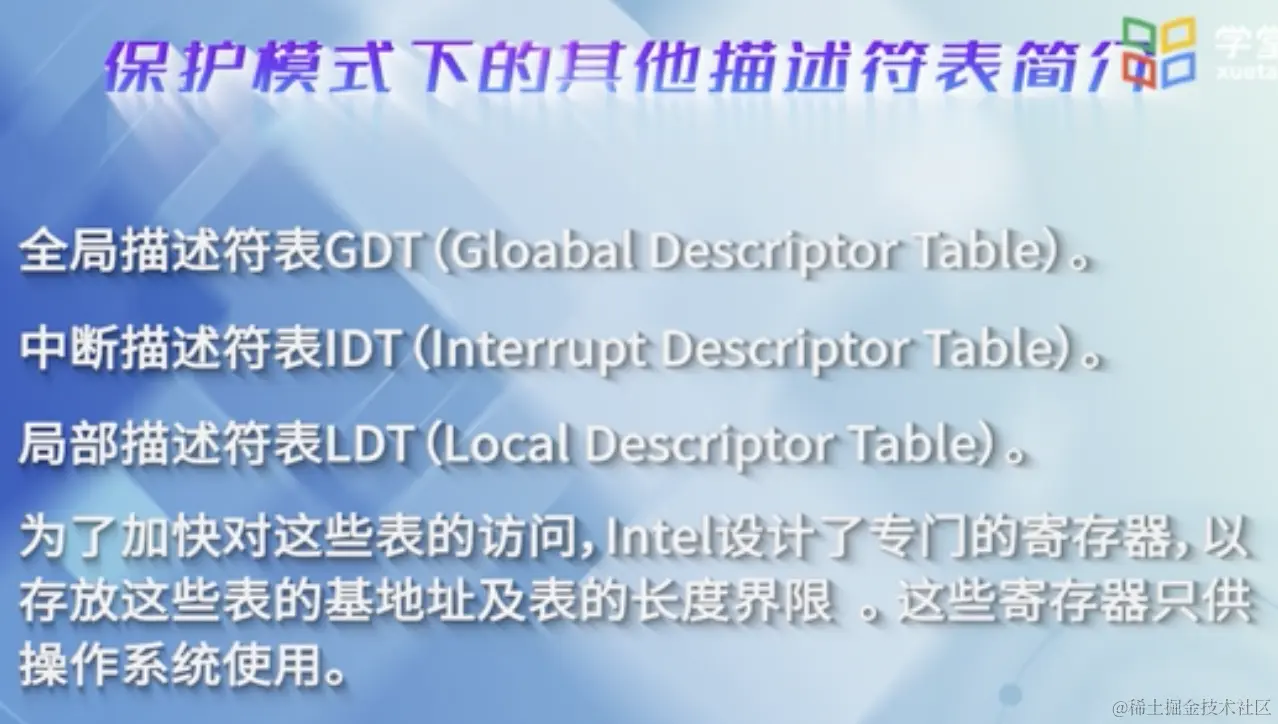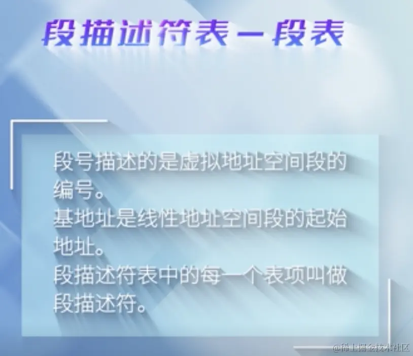 访问内存时不能直接从段寄存器中获得段的起始地址,而需经过额外的转化或检查