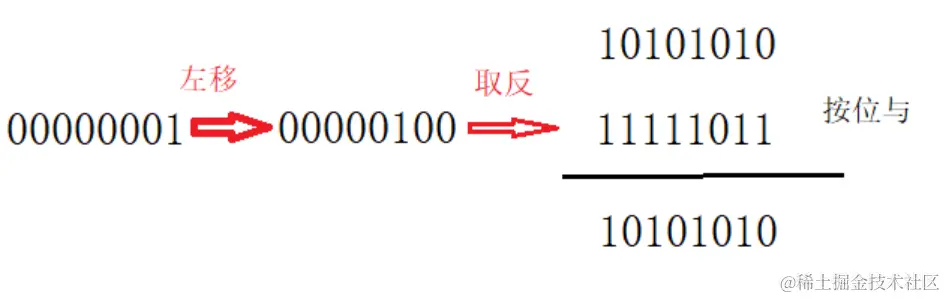 同样的将要清空的那一位置为0,进行按位与,不论原本该位是0还是1,都将该位置0