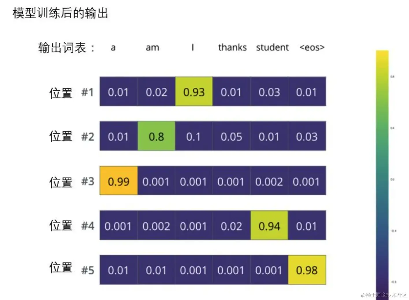 - 得到的 mask QK^T进行 softmax 就会发现单词 0 那一行 1234 的位置都是 0,因为我们设置的是负无穷映射后就成 0 了,再去与矩阵 v 得到矩阵 z
